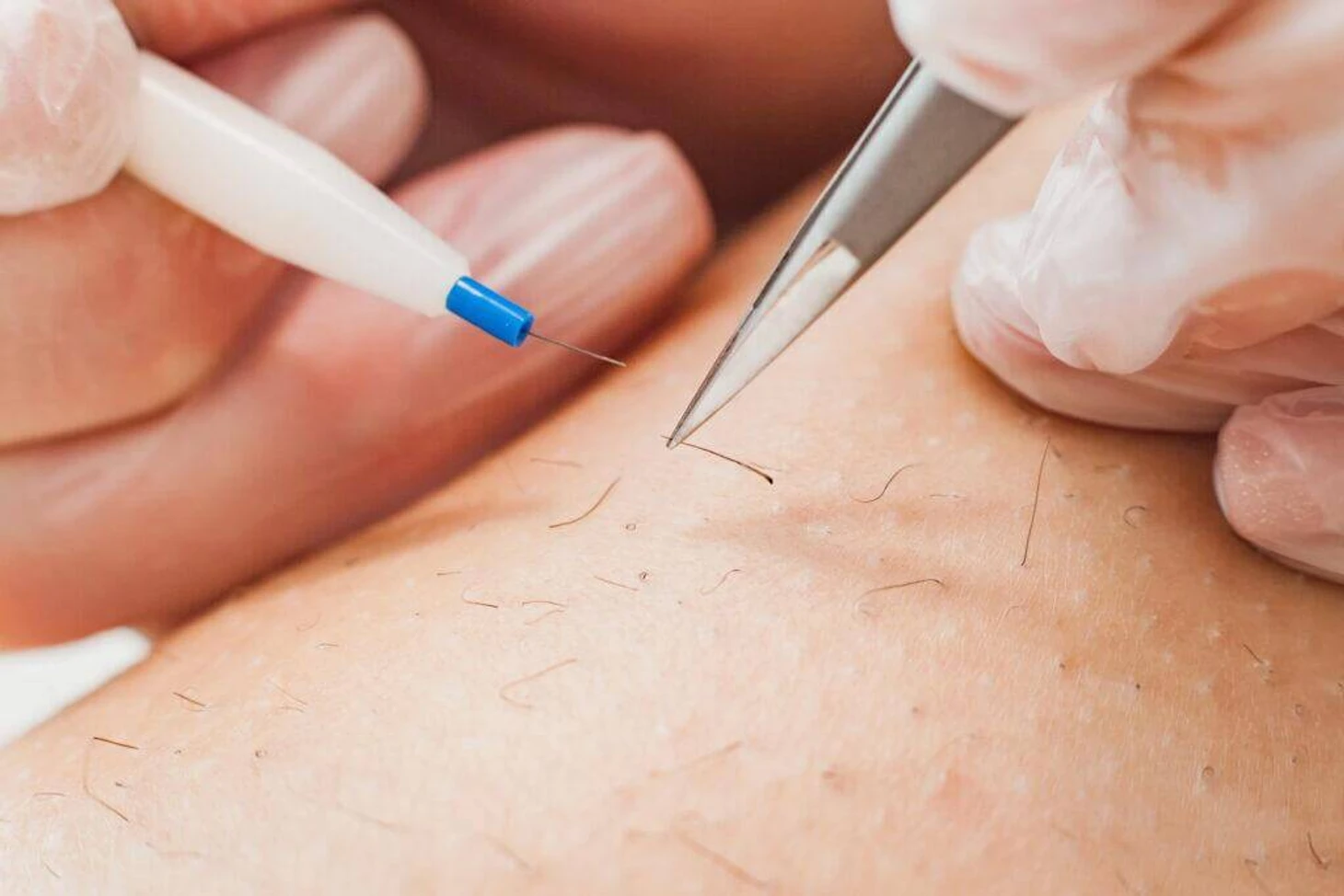 • Принцип действия: тонкая игла вводится в волосяной фолликул, через нее подается электрический ток, который разрушает корень волоса.