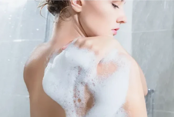 В душе нельзя использовать щетки и скрабы, которые отшелушивают кожу. Тщательно нужно подходить к выбору мыла, геля для душа и других средств для мытья. Большинство из них сушит кожу, что провоцирует шелушение. В составе средств не должно быть агрессивных химических соединений, таких как сульфаты и щелочь. Желательно использовать гели с алоэ вера, глицерином и маслами.