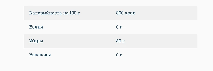 Масло — довольно калорийный продукт, в 100 граммах содержится 900 ккал.