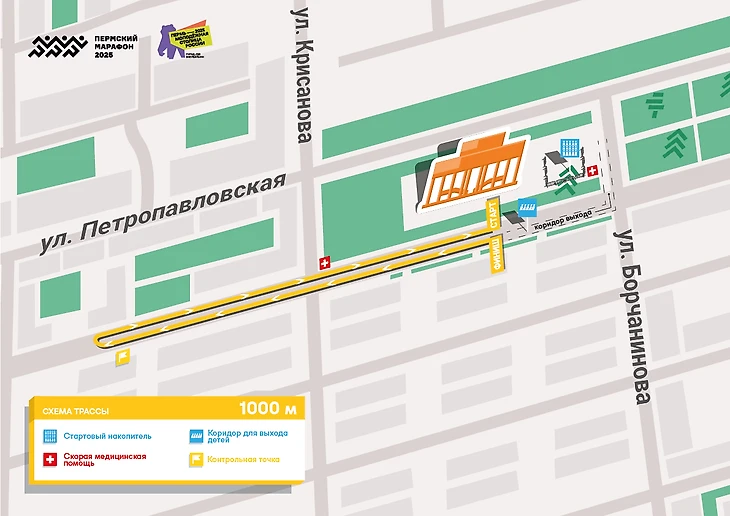 Старт пройдет 6 сентября, за день до главного соревнования. Маршрут для детей начинается возле академического театра «Театр-Театр» и пролегает по улице Ленина, вдоль Петропавловской улицы.