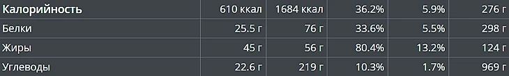 Самое главное – не забывать о принципе умеренного потребления. Не стоит садиться на диету из урбеча (тем более что продукт достаточно жирный), но однозначно стоит добавить его в свой ежедневный рацион (если вы здоровый человек и у вас нет противопоказаний). А ниже вы можете ознакомиться с энергетическим составом блюда.