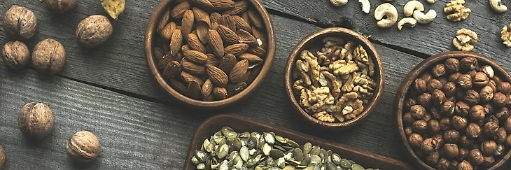 Среди этой группы выделяются арахис, миндаль и семена подсолнечника. Горсть арахиса может обеспечить около 25% суточной потребности в ниацине. Орехи и семена являются отличным источником полезных липидов, белка и клетчатки, что делает их полезным перекусом или добавкой к различным блюдам.