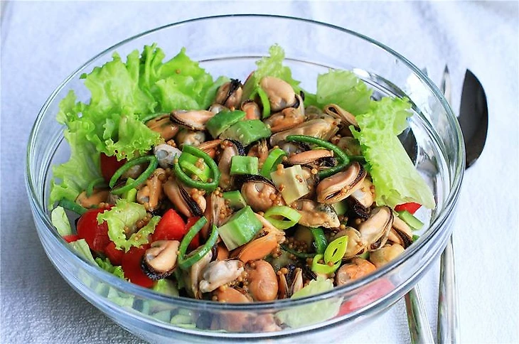 Для заправки смешайте в отдельной миске оливковое масло экстра-класса, свежевыжатый лимонный сок и чайную ложку дижонской горчицы. Соедините все ингредиенты в большой салатнице. Аккуратно перемешайте, стараясь не повредить нежные мидии. Посолите и поперчите по вкусу, помня, что мидии уже несут в себе морскую соль.