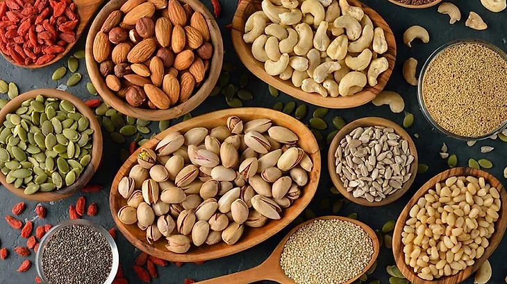 Грецкие орехи содержат 15 мг питательного вещества на 100 г. Семена подсолнечника – 60 мг на 100 г.