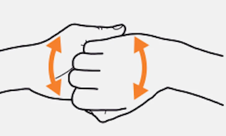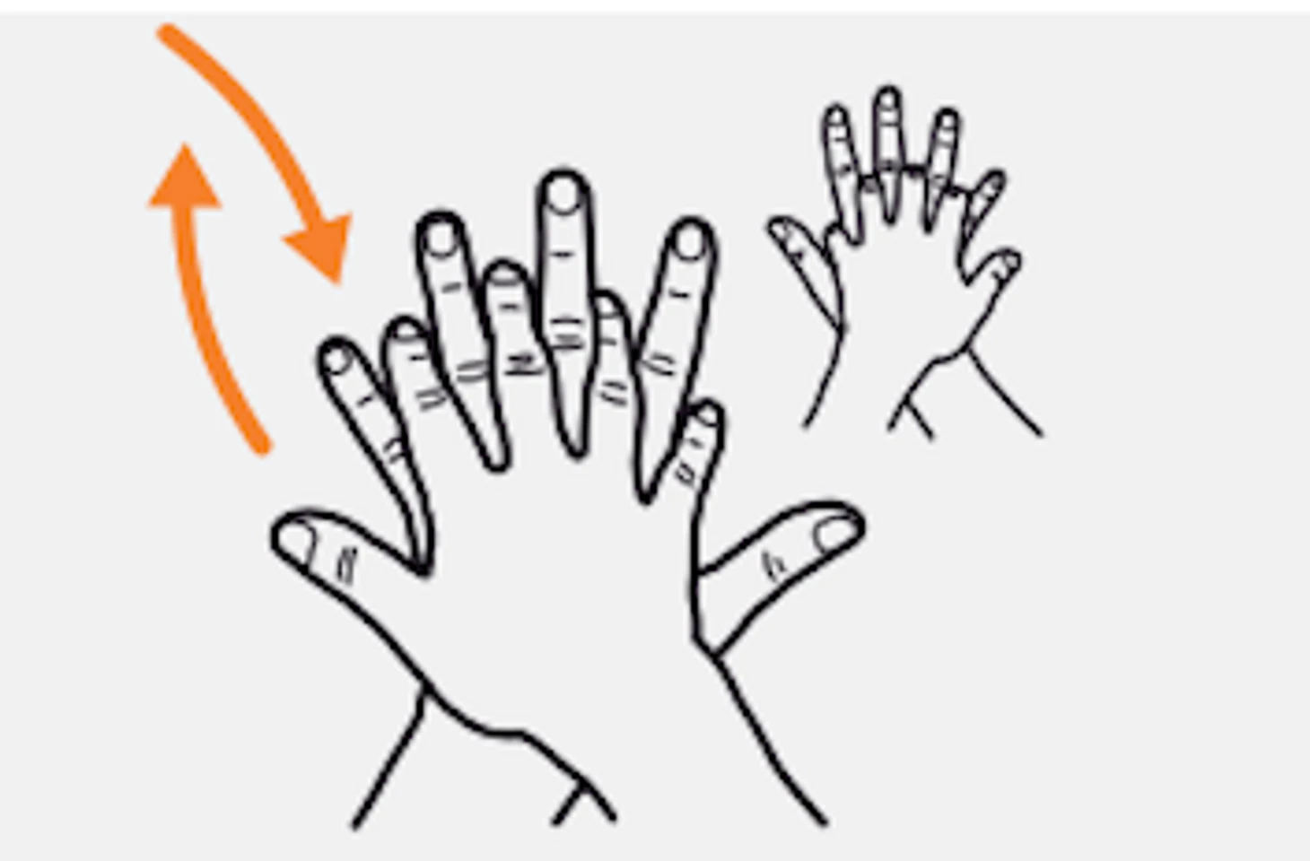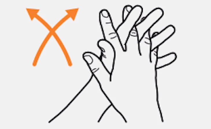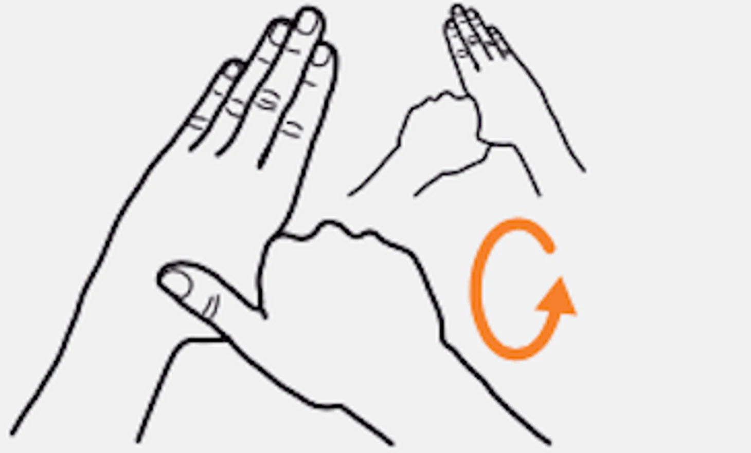 Шаг 4: Переплести пальцы и потереть поочередно ладони друг о друга.