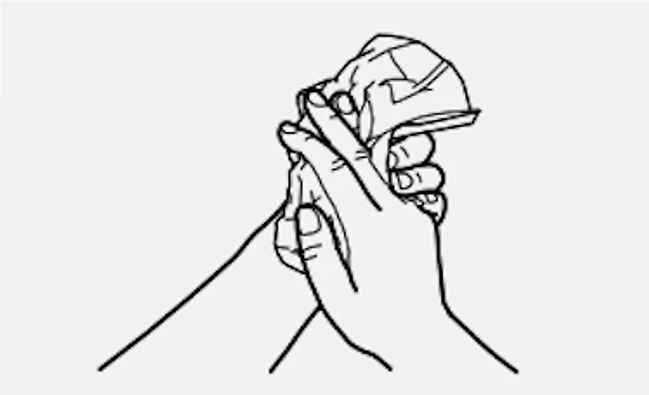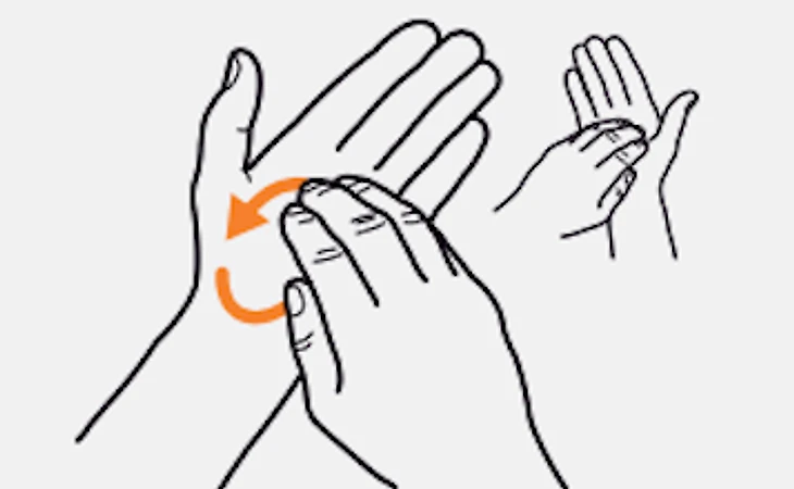 Шаг 7: Подушечками пальцев правой руки потереть ладонь левой руки. Повторить то же самое с другой рукой.