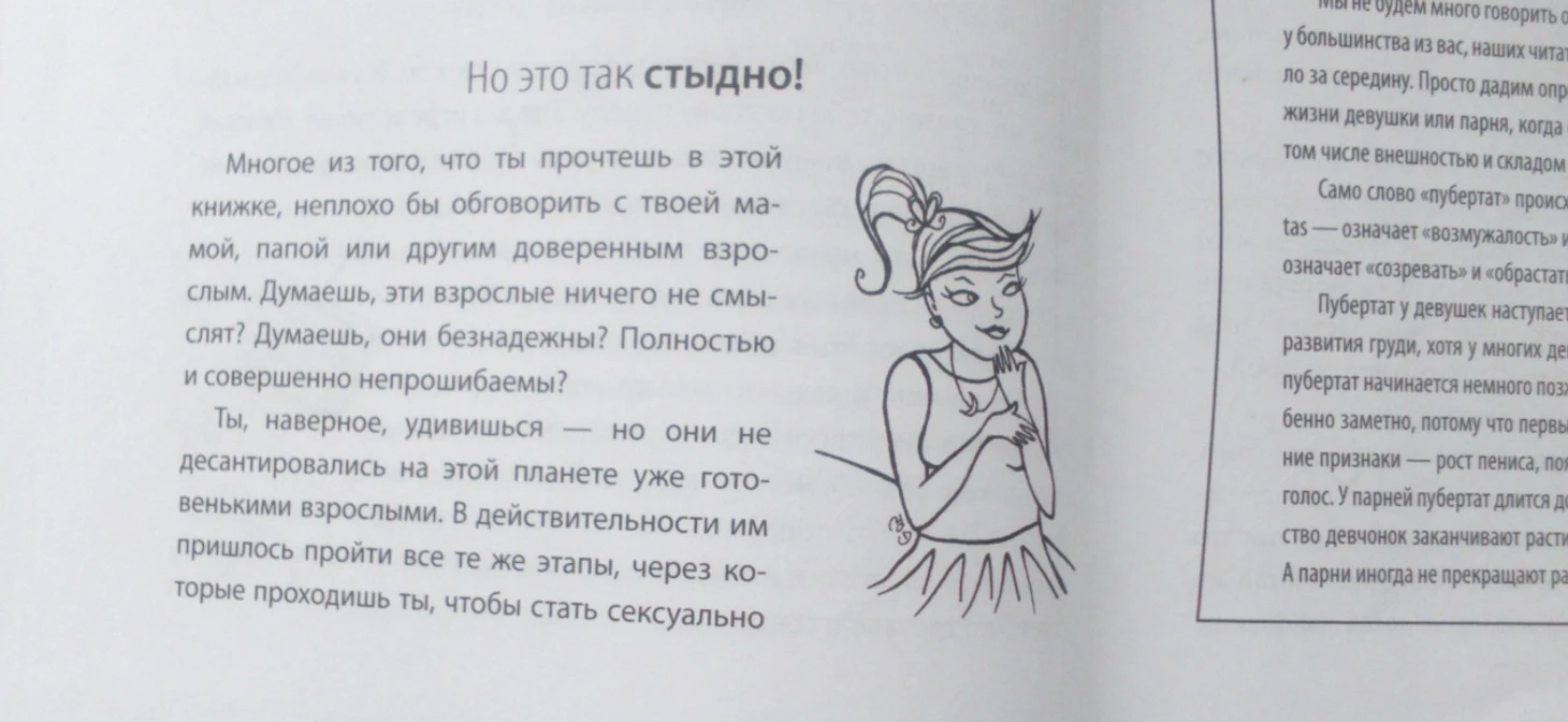 В книге «Как взрослеют девочки» автор объясняет, что такое менструация, как правильно пользоваться гигиеническими средствами, как справляться с перепадами настроения. В книге «Как взрослеют мальчики» Фил Уилкинсон рассказывает о поллюциях, изменениях голоса, росте волос на теле. Обе книги написаны с юмором и пониманием, что делает их привлекательными для подростков. «Не волнуйся, если ты развиваешься быстрее или медленнее других, – пишет автор. – Каждый взрослеет в своем темпе». Эту литературу подростки могут изучать самостоятельно, а за разъяснениями обращаться ко взрослым.