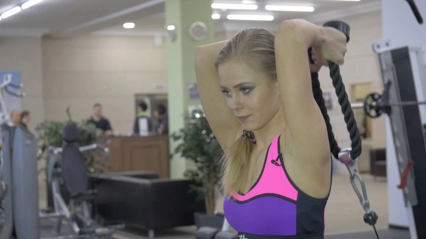 На вдохе разгибайте руки в локтях, возвращая рукоятку в исходное положение. Важно контролировать движение и избегать рывков.