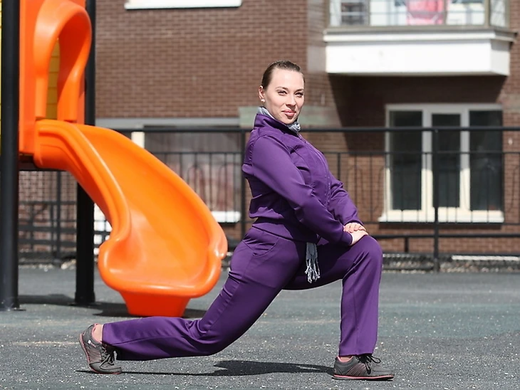 Вам необходимо лечь на бок на коврик. Нижняя рука сгибается в локте для поддержки головы, верхняя рука располагается перед собой для опоры. Ноги должны быть выпрямлены. Напрягая мышцы ягодиц, медленно поднимайте верхнюю ногу на 30-45 градусов. Задержите ногу в верхней точке на несколько секунд, затем плавно опустите. Выполните 10-15 повторений, после чего повернитесь на другой бок и повторите упражнение для другой ноги. Поднимаемую ногу не выводите вперед или назад. Данное упражнение укрепляет отводящие мышцы бедра, которые стабилизируют таз и коленные суставы во время движения.
