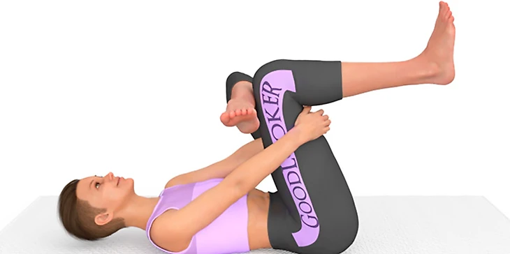 Лягте на спину на фитнес-коврик. Спину плотно прижмите к поверхности, на которой лежите. Одну ногу поднимите – колено должно смотреть в потолок, а часть от колена до стопы быть параллельна полу. Положите стопу второй ноги на бедро первой. Обхватите руками бедро первой ноги (под коленом) и плавно притяните его к себе. Вы должны почувствовать растяжение в задней поверхности бедра и ягодичной мышце. Удерживайте положение 20-30 секунд, дышите ровно и глубоко. Повторите для другой ноги. Если есть физическая возможность, то ногу, на которой лежит стопа, можно выпрямить. Эта растяжка улучшает гибкость тазобедренного сустава, расслабляет мышцы задней поверхности бедра и ягодиц, что особенно важно для тех, кто много сидит в течение дня.