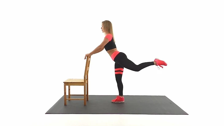 Встаньте боком к опоре на расстоянии вытянутой руки. Упритесь о стену или другую поверхность для удержания равновесия. Спина ровная, не сутультесь, ноги пока держите вместе. Далее поднимите одну ногу вперед, затем плавно отведите ее назад, как маятник. Движения должны быть контролируемыми, без рывков. Выполните 10-15 повторений вперед-назад, затем поменяйте ногу. Во время выполнения не наклоняйте кор вперед, держите тело ровным, а ногу поднимаете до удобного уровня. Движение развивает подвижность тазобедренного сустава в передне-задней плоскости, укрепляет мускулы-стабилизаторы и улучшает координацию.