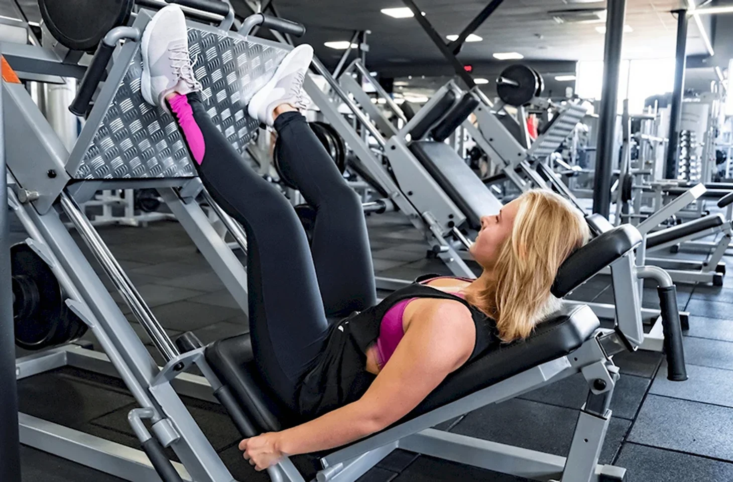 • Жим ногами: тренажер задействует не только заднюю часть тела, но и квадрицепсы и бицепсы бедра. Однако, при правильной технике выполнения (широкая постановка стоп, глубокое опускание платформы) акцент смещается на ягодичные мышцы. Его преимущество: возможность работать с большим весом, снижение нагрузки на позвоночный столб.