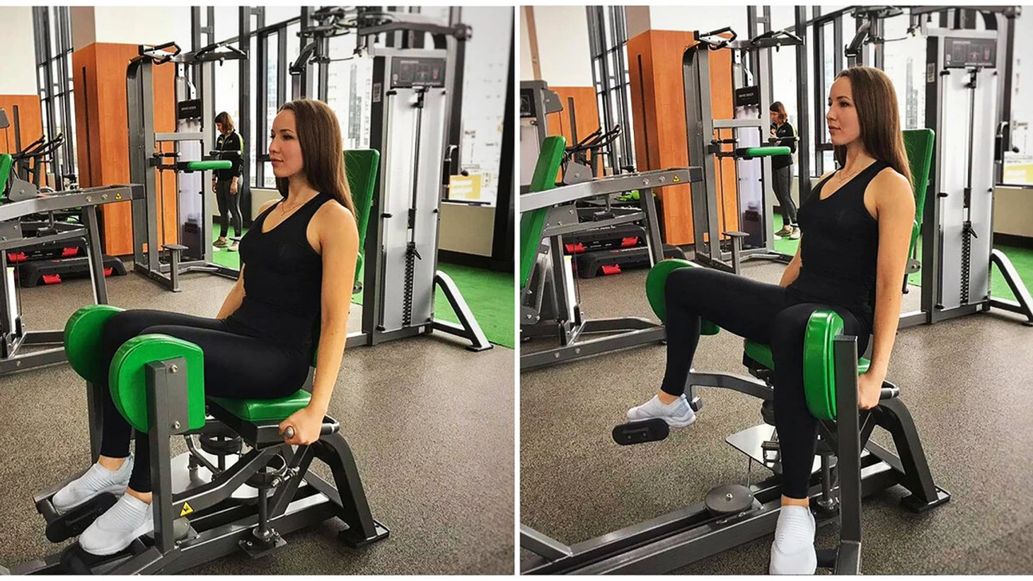 • Тренажер для сгибания/разгибания ног: он нужен для проработки мышц задней поверхности бедра (бицепсы бедра), но при выполнении разгибания ног также активно работают большие ягодичные мышцы. Из особенностей: возможность прокачать попу и тыльную часть бедра, что делает ноги значительно мощнее. Здесь можно менять веса, поэтому тренажер подойдет для каждого.