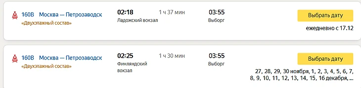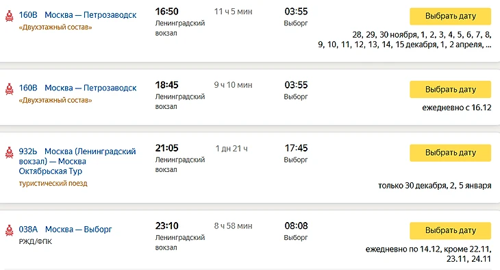 Однако, учтите, что в скриншотах указаны минимальные цены на билеты, которые могут варьироваться в зависимости от даты поездки, типа вагона и наличия мест. Но поезд – самый экономичный способ доехать до Выборга из Москвы.