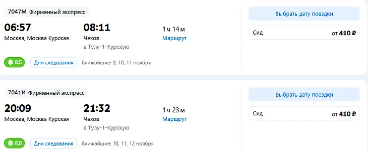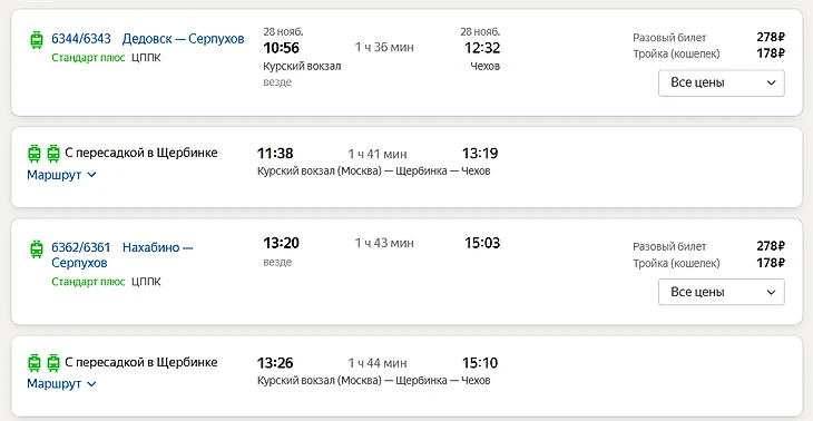 Между Москвой и Чеховом курсирует 29 пригородных электропоездов. Время в пути варьируется от 1 часа 14 минут до 1 часа 41 минуты. Самая быстрая электричка на этом маршруте – № 6431, которая преодолевает расстояние за 1 час 14 минут. Стоит учитывать, что время в пути может изменяться в зависимости от количества остановок и типа электропоезда (обычный или экспресс). Важно помнить, что пригородные поезда Москва – Чехов следуют с остановками на различных станциях, что позволяет пассажирам совершать поездки не только до конечного пункта, но и до промежуточных станций, а также осуществлять пересадки на другие направления.