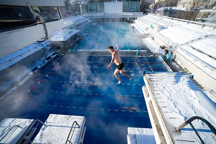 Можно окунуться в зимней морозной обстановке в летнюю, поплавав в теплом уличном бассейне. Один из таких «Чайка» расположен в Хамовниках. Там по 8 дорожек 25 и 50 метровых, а вода прогрета до +28°С. Если при плавании в бассейне вы замерзнете, то можно посетить сауну.