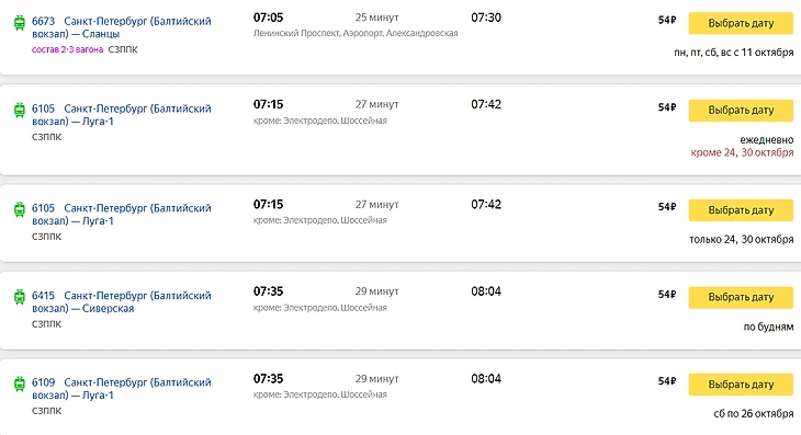 Электрички с Балтийского вокзала отправляются тоже очень часто по следующим направлениям: