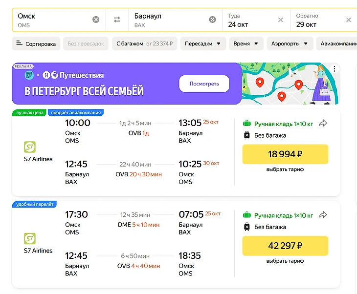 Более бюджетный вариант путешествия на Алтай на самолете — полет в соседний Алтайский край. Из Москвы, Санкт-Петербурга и других городов в Барнаул ежедневно больше рейсов и стоимость билетов ниже. Например, из Омска можно долететь за 12 000 – 15 000 рублей, а из Новосибирска всего за 5000.
