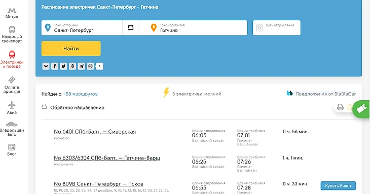 Расписание электричек, время в пути и маршрут поездки можно посмотреть на сайте или в приложении TransportSpb.