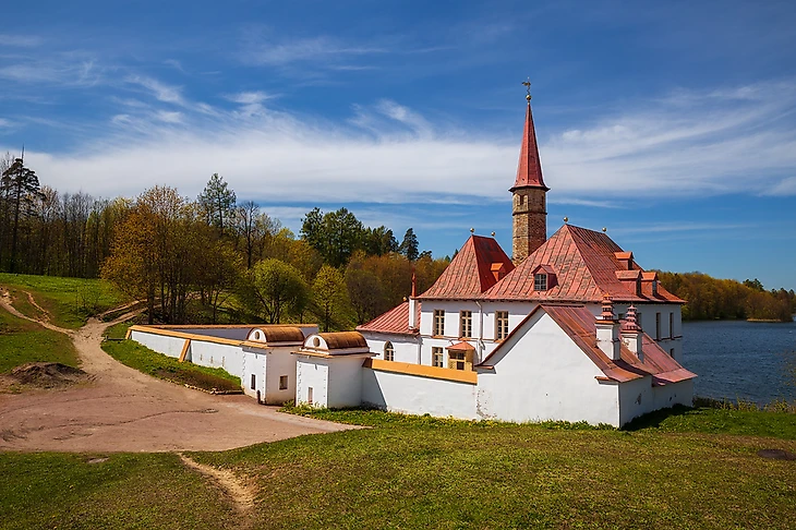 Выйдя на станции «Гатчина-Варшавская», можно начать свой обзорный курс с Приоратского парка, до которого идти около 200 метров.