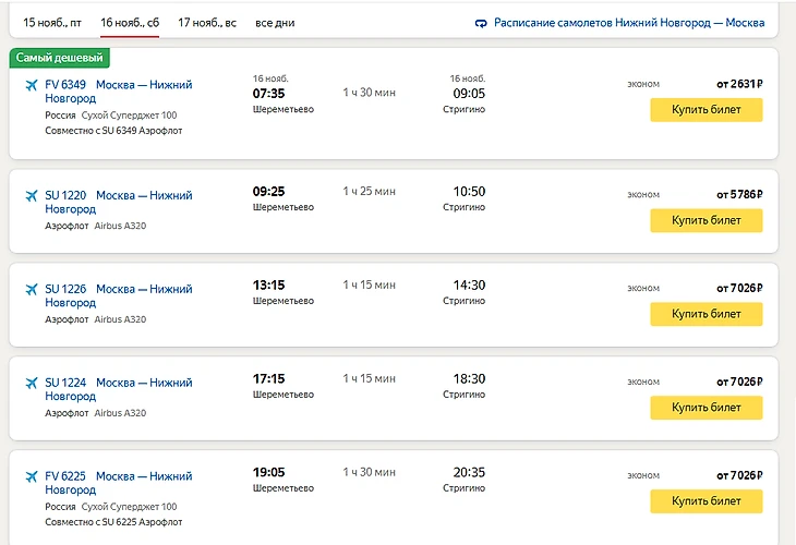 Иногда можно найти билеты в определенные дни в районе 2-3 тысяч рублей. Воспользуйтесь сервисом Яндекс Расписания, где можно посмотреть все рейсы по маршруту за определенные дни.