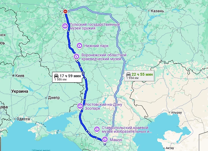 Знатоки могут заметить, что есть еще один маршрут, по которому можно доехать до Пятигорска на автомобиле — трасса Е-119. Предварительно нужно выбрать первый вариант «Дон», но на развязке возле села Умрышенка ехать прямо в сторону указателей на Тамбов и далее на Волгоград. С одной стороны, расстояние будет более коротким, чем во втором варианте, удастся избежать платных трасс, с другой, качество многих участков на Е-119 оставляет желать лучшего.