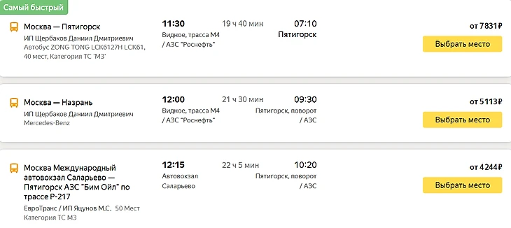 Из Москвы в сторону Пятигорска ежедневно отправляются от пяти до восьми автобусных рейсов с разных автовокзалов и автостанций: