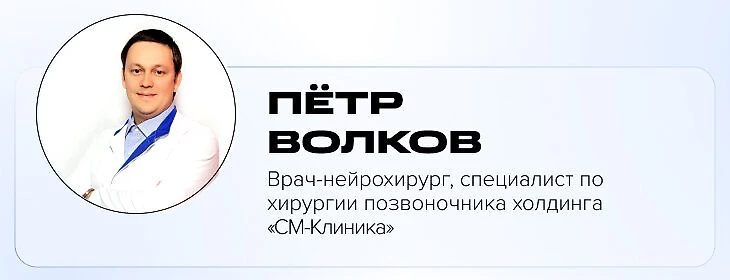 Мы поговорили о здоровье позвоночника с Петром Волковым – нейрохирургом, специалистом по спинальной хирургии в холдинге «СМ-Клиника». Он рассказал, почему образуются межпозвонковые грыжи, чем они опасны, как понять, что при боли в спине точно нужна операция и есть ли риск серьезных осложнений после нее.