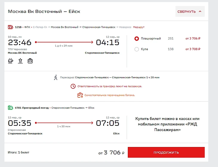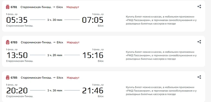 Если прямой поезд пока недоступен, можно выбрать маршрут с пересадкой через Староминскую-Тимашевск: