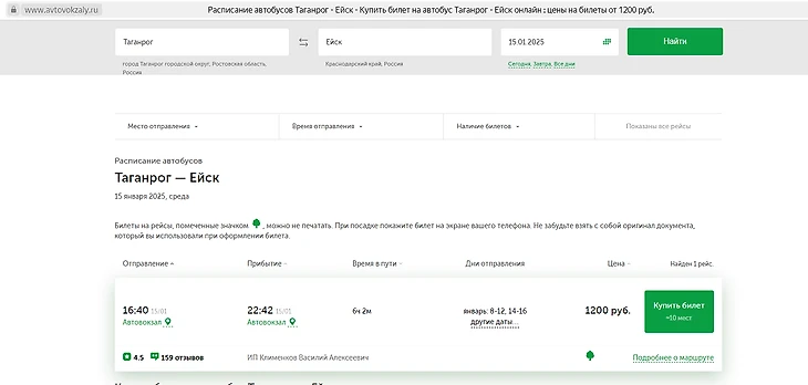 Для тех, кто планирует путешествие в другие даты, можно рассмотреть маршрут через Таганрог: