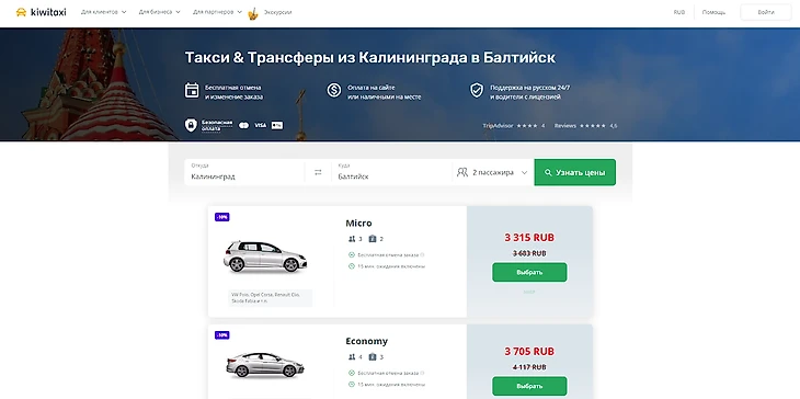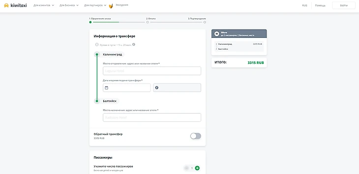 Обратите внимание на удобный сервис Kiwitaxi! Заказать такси-трансфер очень просто: вам нужно всего лишь указать маршрут и выбрать подходящий автомобиль. Заполните форму заказа и выберите удобный способ оплаты — и все готово!