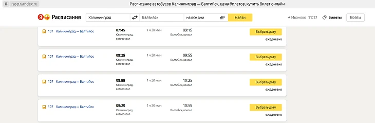 Все способы, как доехать до Балтийска из Калининграда в 2025 году