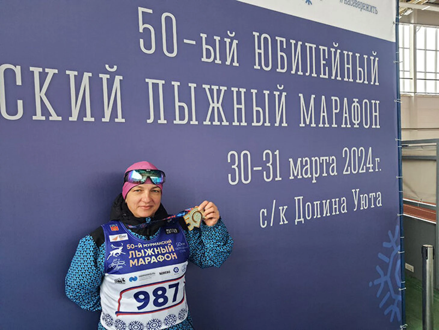 Мария Калашникова, проехала четыре лыжных марафона: «Я не так давно бегаю на лыжах, сезон 24/25 – мой четвертый. Когда я первый раз встала на лыжи, мне сказали, что самое сложное – это пробежать классический марафон в Мурманске, поэтому я дала себе зарок, что следующей зимой пробегу 50 км на „Празднике Севера“. В 2023 году я пробежала 50 км классикой, на следующий год – уже 25 км коньком и 50 классическим ходом, в 2025 году также планирую 50 км классикой. Для меня это уже традиция – каждый год преодолевать Мурманский классический марафон.
