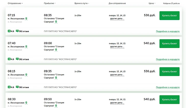 Автобусы в Серпухов отправляются с нескольких столичных автовокзалов, включая:
