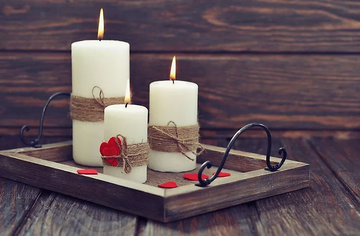Свечи. Ничто так не добавляет романтики, как мягкий свет свечей. Разместите их на столе, в углах комнаты или в ванной. Выбирайте разные по высоте свечи, для воспроизведения интересного визуального эффекта. Ароматические свечи подарят приятный аромат.
