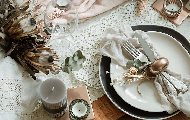 Используйте текстиль – красивая скатерть, стильные салфетки и подставки под бокалы. Не забывайте о цветовой гамме — выбирайте теплые и нежные оттенки, которые будут гармонировать друг с другом.