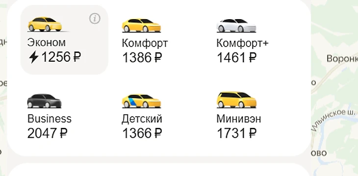 В часы пик или при сильных пробках стоимость поездки может немного увеличиться из-за большего времени, необходимого для преодоления расстояния.