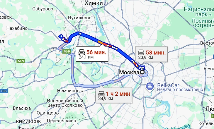 Время в пути. 15–20 минут, в зависимости от загруженности дорог.