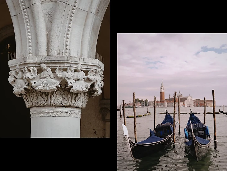 Мы уже бывали в Венеции раньше, поэтому в этот раз позволили себе никуда не бежать и не торопиться увидеть все и сразу, а просто насладиться городом, его архитектурой и атмосферой, итальянской едой — и компанией друг друга. Просыпались с утра с видом на мачты соседних яхт и колокольню церкви XIII века, завтракали прямо на лодке и безо всякой цели шли гулять по городу.За неделю мы успели сгонять на соседний остров Бурано с его фотогеничными разноцветными домиками; посетить Венецианскую биеннале (Жардини, где находятся павильоны всех стран, находится всего в 10 минутах от марины); залипнуть на старинную очень подробную карту Венеции в музее Коррер; отыскать синих грифонов в мраморной мозаике XIV века на полу собора Святого Марка и найти в капителях колонн Палаццо Дукале дельфинов и крабов, о которых писал Рёскин.