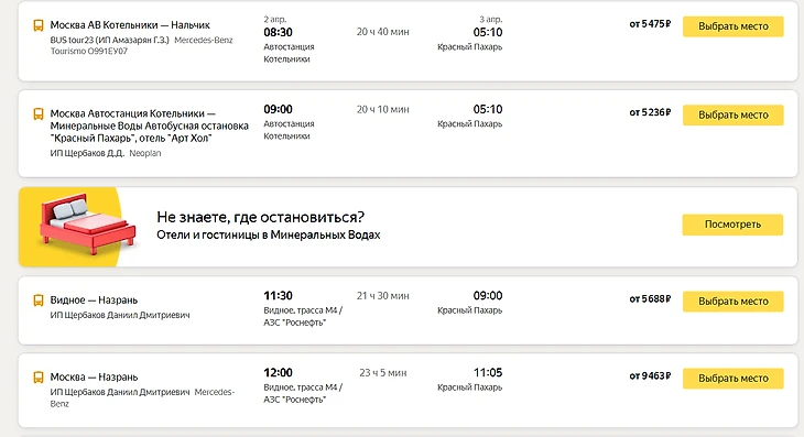 Краснодар, Волгоград: от 2 000 рублей, в пути 7–9 часов.