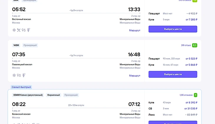 Рекомендация: если покупаете билет заранее или ловите акции, перелет может быть даже выгоднее поезда.