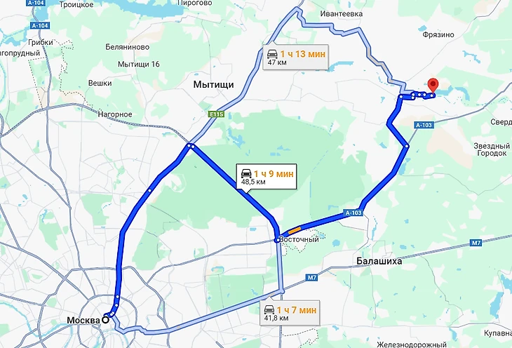 Ярославское шоссе — Фряновское шоссе — подходит для тех, кто едет из северо-восточных районов Москвы. Путь может занять немного больше, но загруженность дороги обычно ниже.