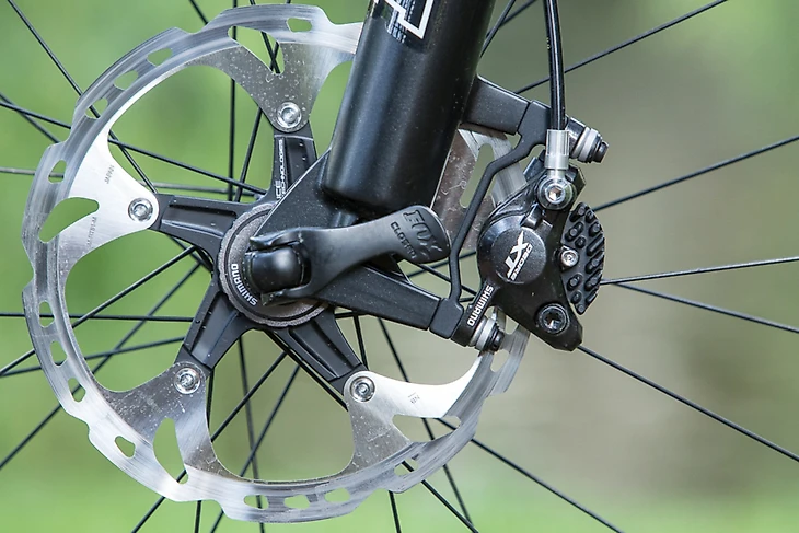 В дисковых механических нужно отрегулировать положение калипера и ротора. Нажмите на ручку тормоза, чтобы колодки прижались к ротору и равномерно затяните болты крепления калипера. Затем отпустите тормозную ручку и проверьте, чтобы ротор не терся о колодки.