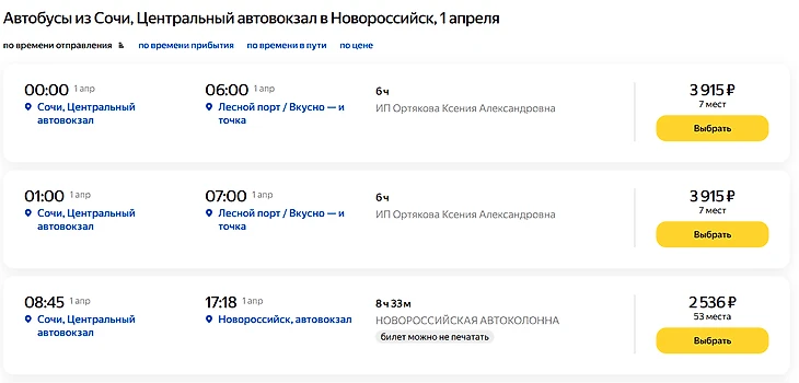 Стоимость проезда не фиксированная. В зависимости от перевозчика и времени отправления, добраться до Новороссийска на автобусе можно как за 2000, так и 4000 рублей.