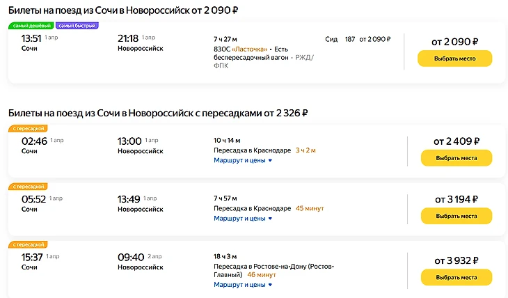 Из реальных способов сэкономить на поездке из Сочи в Новороссийск выделим поездку на экспрессе «Ласточка» и поиск попутчиков. Это самые бюджетные варианты, остальные обойдутся дороже.