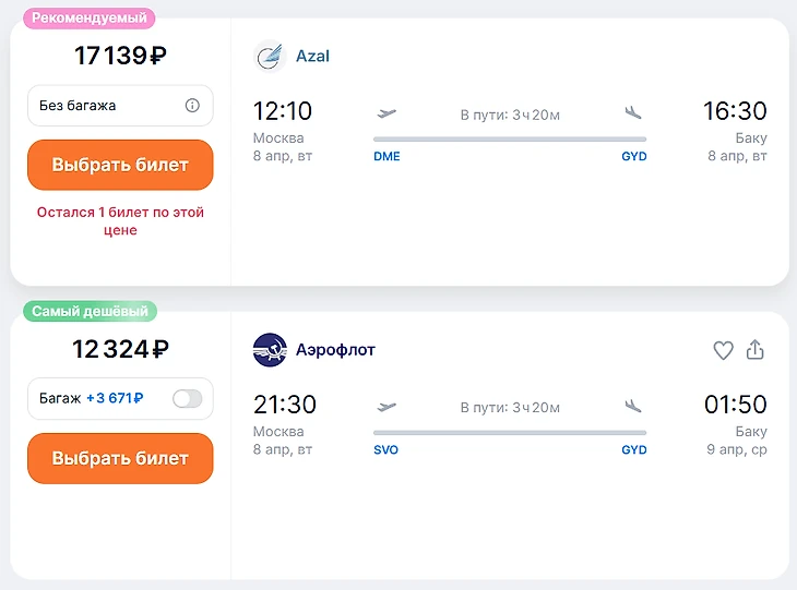 Используйте соседние аэропорты – иногда дешевле лететь, например, в Тбилиси или Грозный, а оттуда добираться до Баку наземным транспортом.