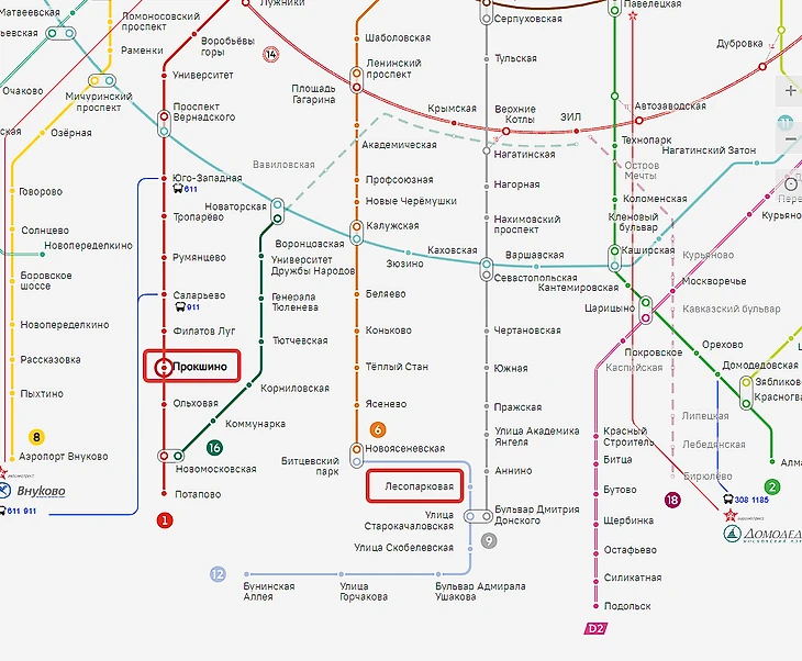 У маршрута МЦ 2 точкой отправления является метро «Прокшино». Это «Сокольническая линия». Пересесть на красную ветку можно на станциях «Локомотив», «Сокольники», «Комсомольская», «Тургеневская», «Сретенский бульвар», «Кузнецкий мост», «Театральная», «Площадь Революции», «Арбатская», «Парк Культуры», «Лужники», «Проспект Вернадского».