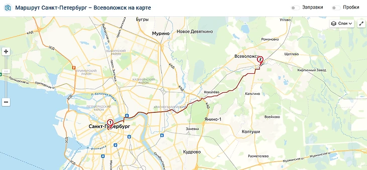 Вы можете выбрать портал RuDorogi, чтобы составить маршрут поездки. На портале есть опция выбора точки отправления и назначения, указания промежуточных пунктов. Также следить за пробками на дороге и рассчитать затраты на поездку, указав средний расход топлива и его стоимость. При расходе в 10 литров на 100 км и цене в 55 рублей, на маршрут через Янино-1 понадобится топлива стоимостью в 171 рубль.