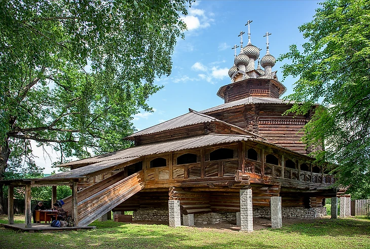 Костромская слобода — музей деревянного зодчества под открытым небом. Настоящие избы, мельницы, баньки. Работают мастер-классы, можно прокатиться на повозке. Билет — 300–500 рублей, детям — 150 рублей.