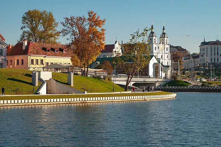 Minsk. Belarus – October 12, 2018: View of the Svisloch River in the center of Minsk